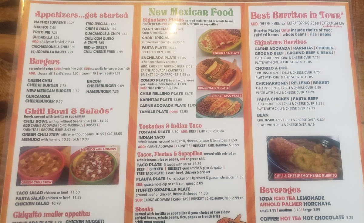 For those craving a lighter option, the Tostada Plate at $8.30 and the savory Indian Taco priced at $11.50 are must-tries. Don’t miss the culinary treasures available on Wednesdays and Fridays, like the Chili Relleno Plate and Chicken Enchilada Plate.